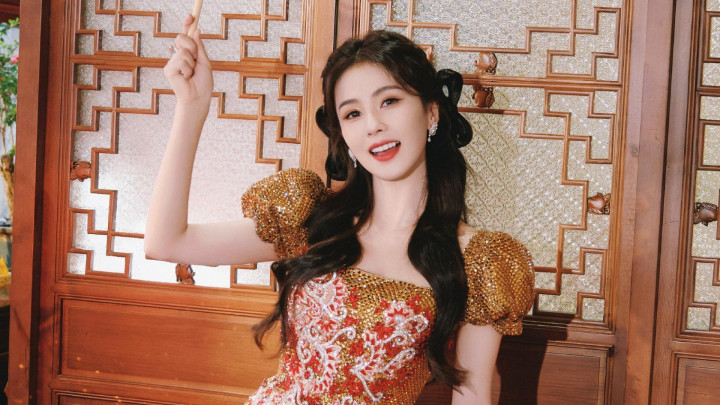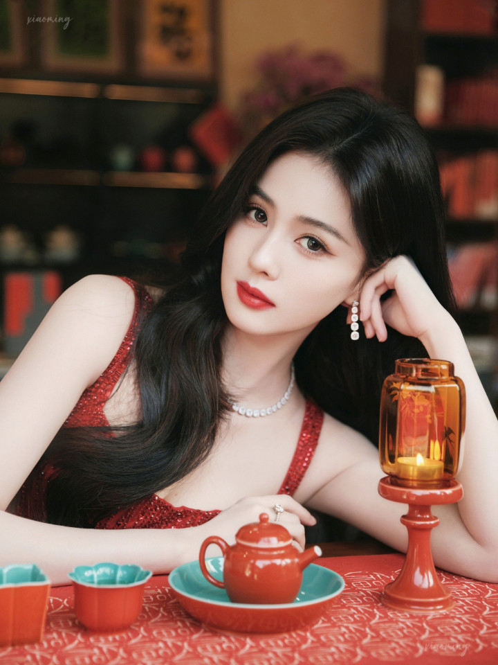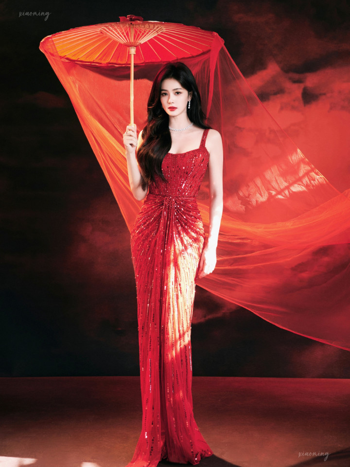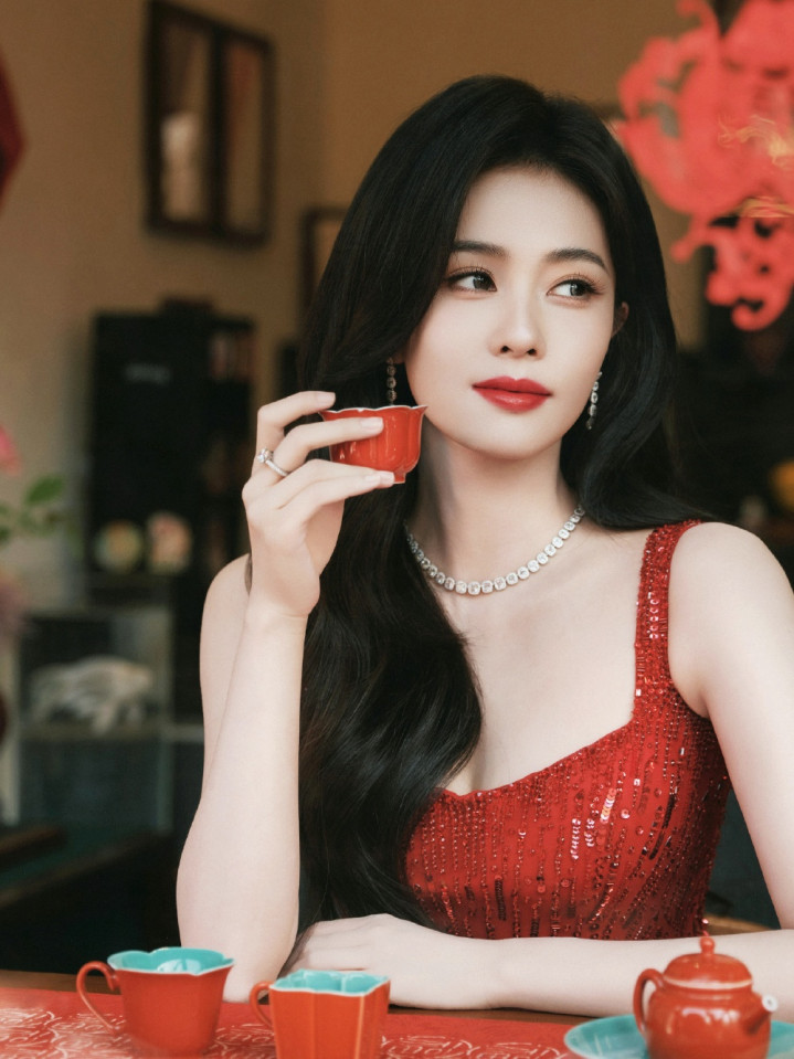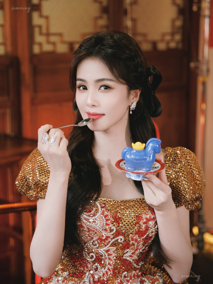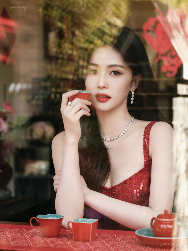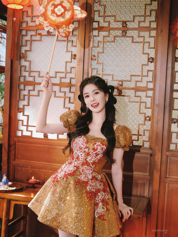 白鹿除夕亮片裙亮相,浓朱点春高清图集,锦绣芳年风味独绝