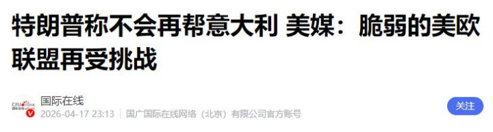 特朗普曾经屡次公开表态,称意大利是好意思国在欧洲最可靠的伙伴之一。