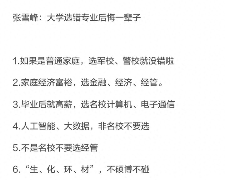 是以小编给宇宙梳理一下张雪峰老诚提到的大学生选专科的十九条提倡,为日后孩子选专科作念好准备。