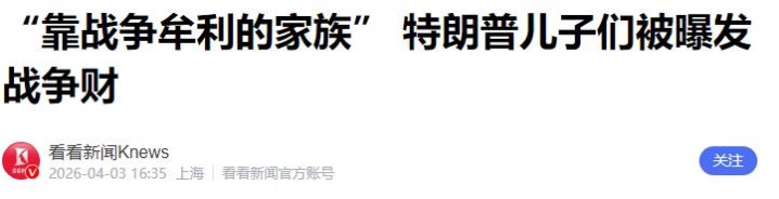 望望新闻Knews——“靠干戈渔利的眷属” 特朗普犬子们被曝发干戈财——2026年4月3日