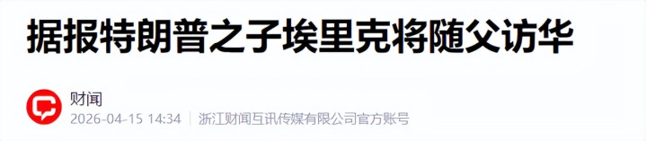 财文——据报特朗普之子埃里克将随父访华——2026年4月15日