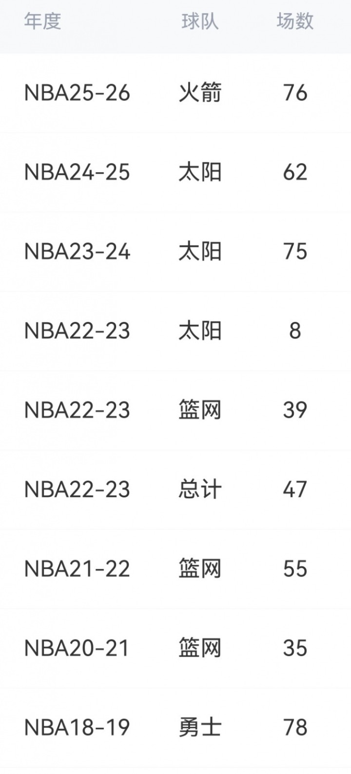 至此,杜兰特本赛季出场数达到了76场,创离开强者后新高(23-24赛季杜兰特在太阳曾出战75场)!