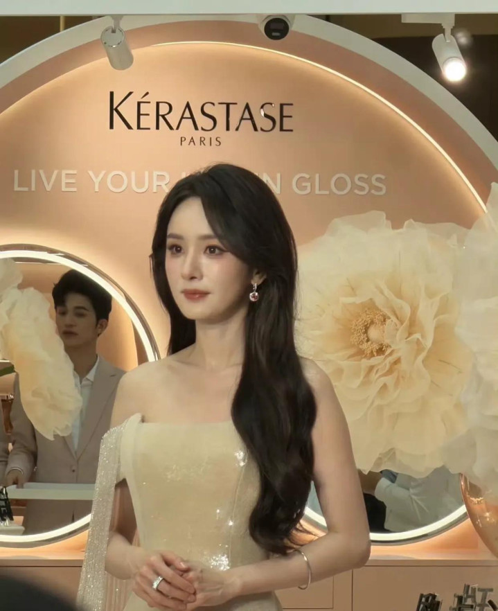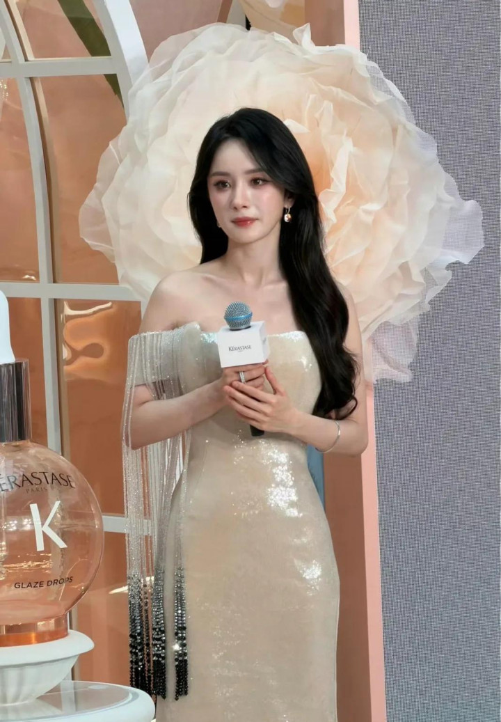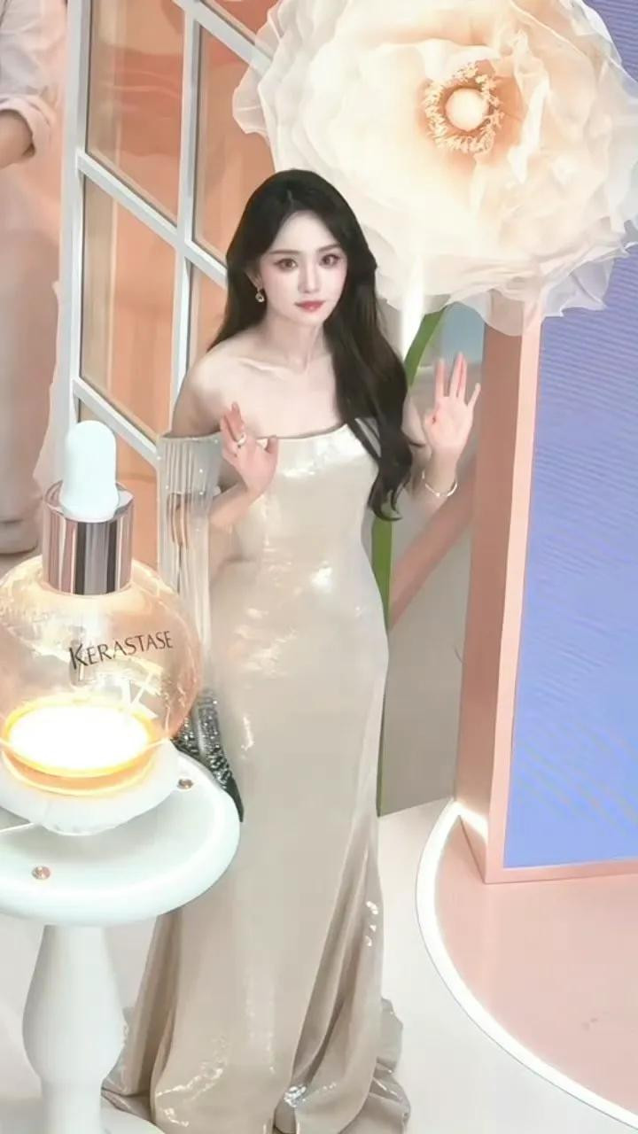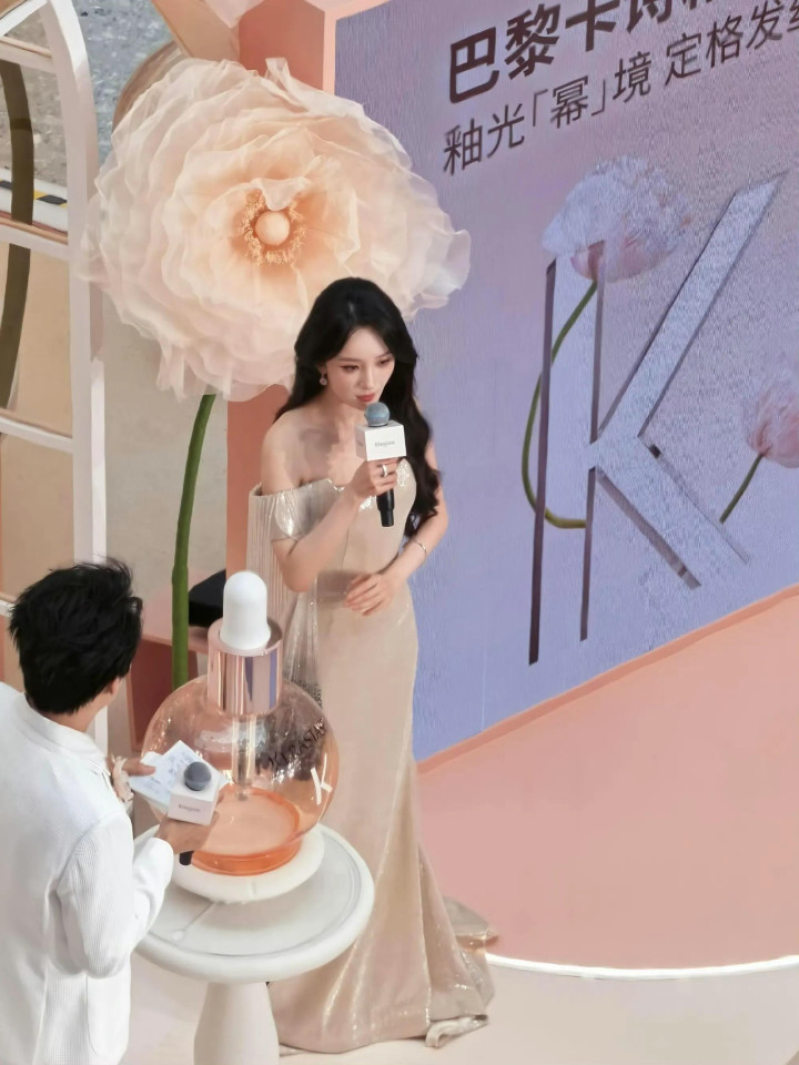 近日,杨幂现身三亚干涉品牌活动,活动中她身穿Alexis Mabille 2024秋冬高定裸色亮片降服,搭配象征性的蓬松鬈发。