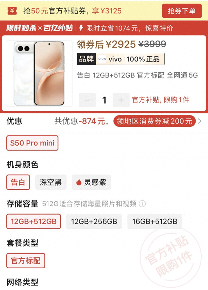 尽管说各大品牌旗下的机型均有价钱上调的情况,可就在第三方电商平台之中,依托于平台的补贴行为,就许多机型亦然出现了“很猛”的大降价情况,就比如说vivo S50 Pro mini这款居品就是如斯!可参考到某多多旗下的价钱,其中512GB仅是需要2925元即可起初了,这款vivo手机的话,属于是线下商场的定位,可整机成就参数上的发扬如故很可以的,应用到平日生计之中,仍可以带来出色的体验感,同期,这还属于是一款小屏手机,平日使用也能带来较好的手感体验。